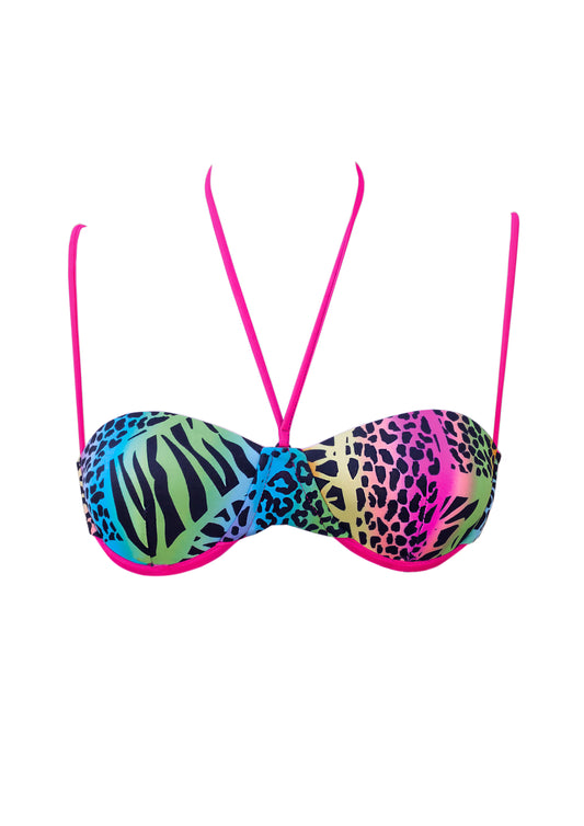 La collezione di ispirazione anni 80  è un esplosione di colore, la linea è realizzata con un tessuto lycra bioelastica di alta qualità, morbida, elastica e confortevole.